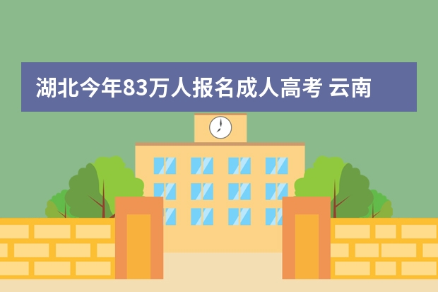 2015湖北成人高考成绩可查共8.3万人报考 昨从省教育考试院获悉,成人高考成绩出炉,相关考生可凭准考证号、身份证号在该院官网查询。 据了解,今年我省共有8.3万人报考成人高考,人数为近7年来最少。报考成人高考的人数减少,与我省普通高考录取率逐年提高、相关学龄段总人数降低相关。成人高考政策越来越严,也吓退了一些想钻空子的人。2014云南成人高考9月1日起网上报名2014年云南省